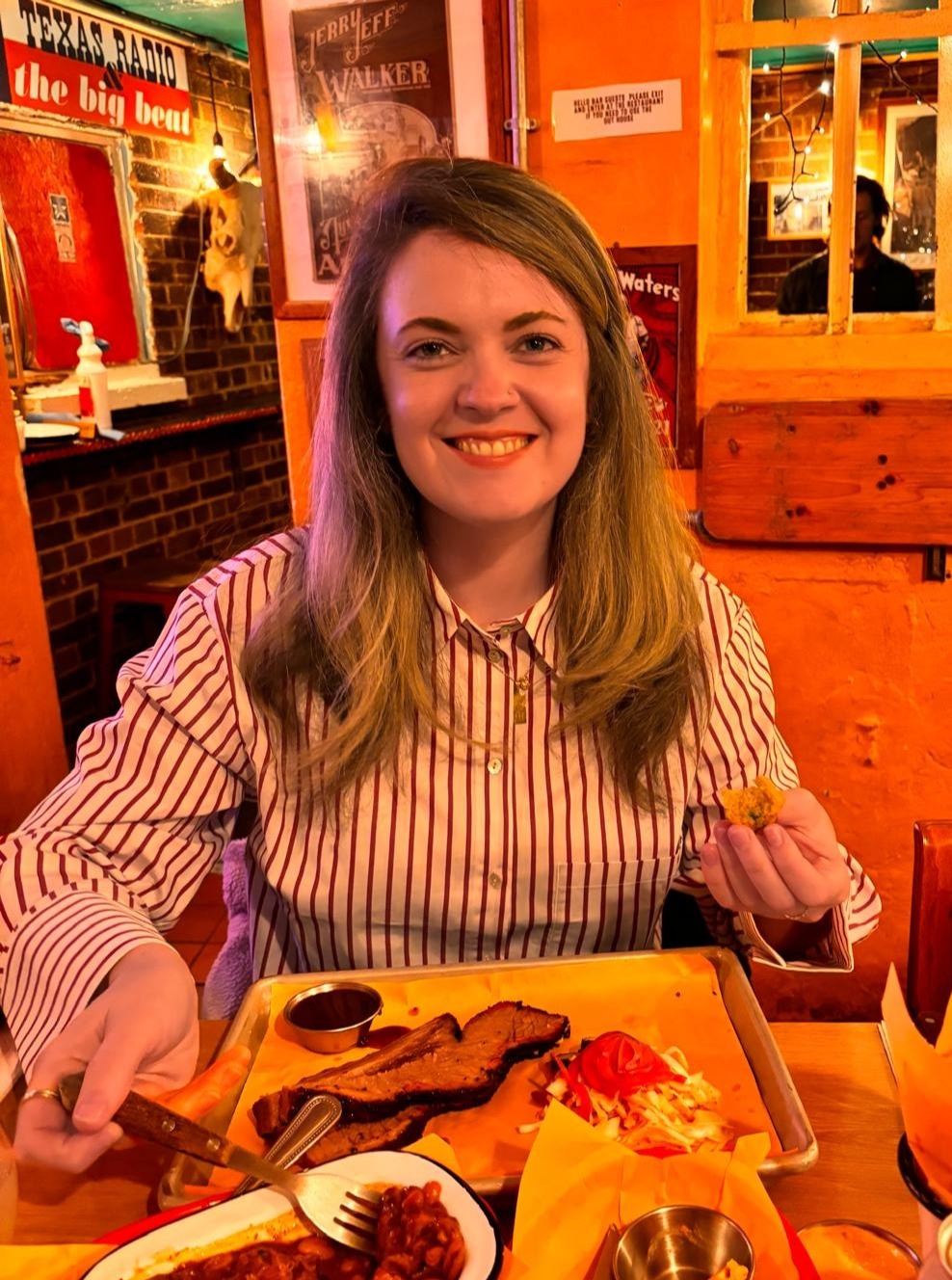 Hey! I'm Carlotta, and that's me eating a Texan-style BBQ feast. In other words, my happy place.