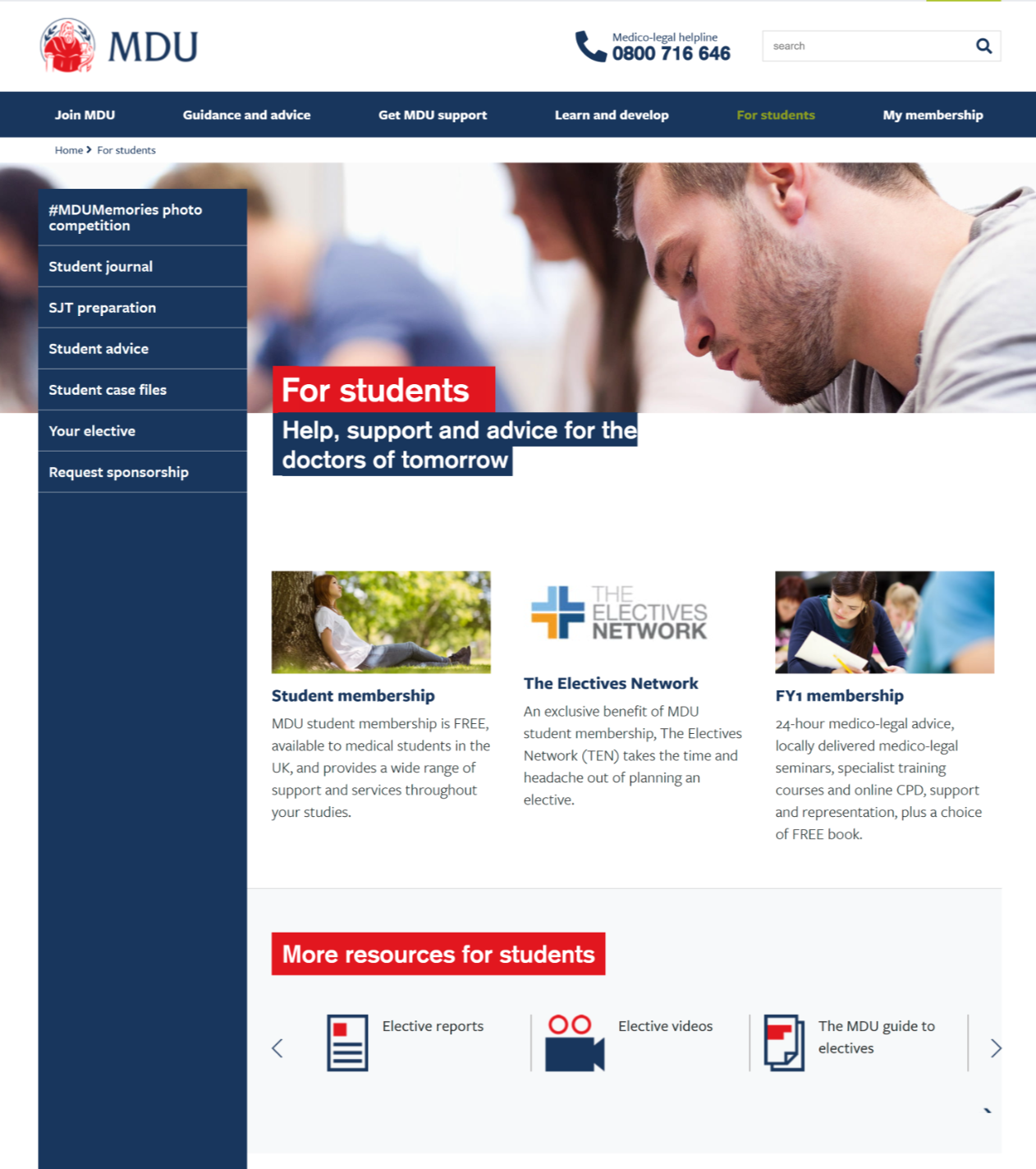 I proposed and built a new central hub to bring everything together in one section, replacing outdated content with engaging monthly content and essential resources on electives, exams and more.